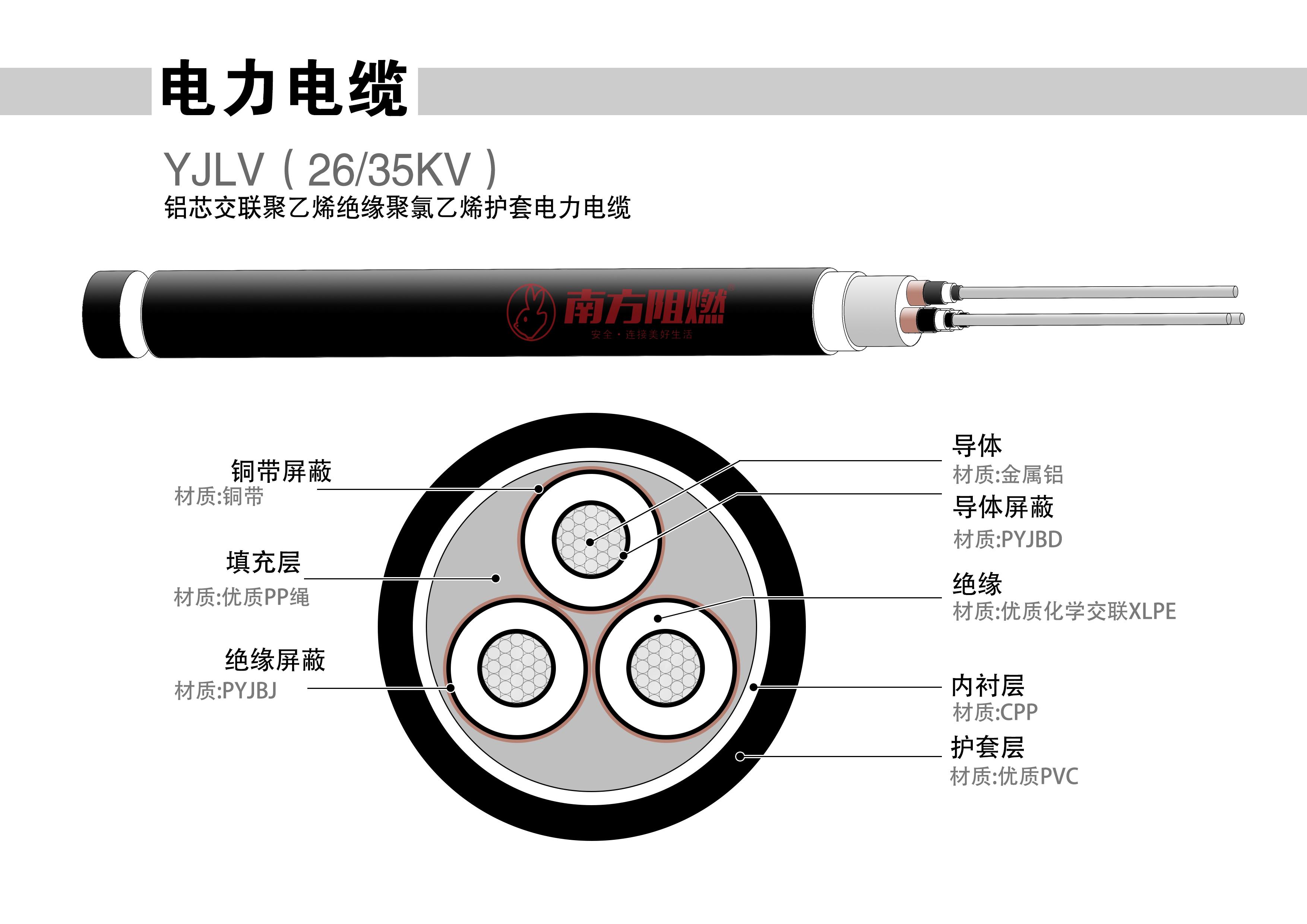YJLV(26/35KV)呂芯交聯(lián)聚乙烯絕緣聚氯乙烯護套電力電纜